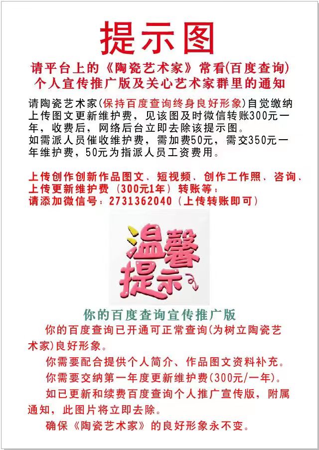 《陶瓷艺术家》推广宣传(百度查询)个人版要上传创新作品图文更新啦!