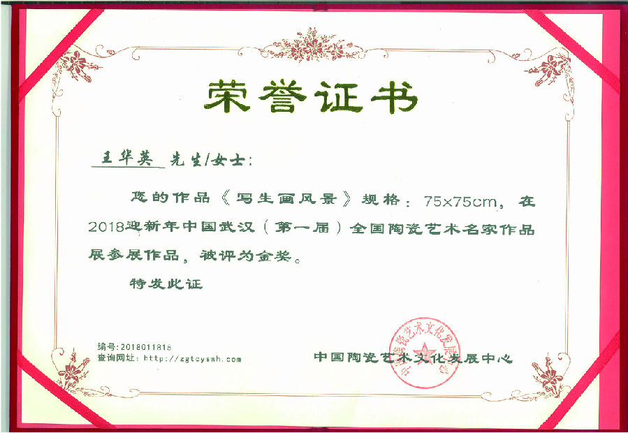 王华英: 女, 1968年出生于江西景德镇陶瓷世家.景德镇高级工艺美术师,自幼酷爱绘画艺术,25岁开始创建工作室