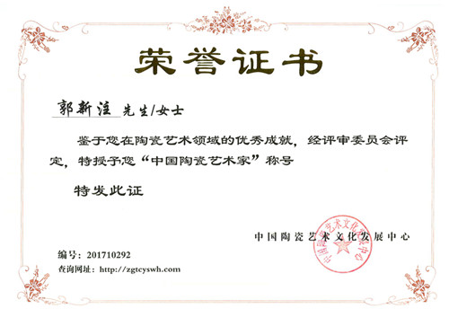 郭新注,男,1971年5月出生于福建德化,擅长雕塑设计,陶瓷装饰,1988年至1991年入德化职校,系统学习陶瓷知识及雕塑创作,2000年至2007年负责陶瓷雕塑设计后入景德镇陶瓷学院学习,毕业后一直从事陶瓷创作至今。白瓷作品雕塑《盛世辉煌》在第十一届中国(国家级)工艺美术大师精品博览会中荣获中国工艺美术金奖,2017年经中国陶瓷艺术文化发展中心专家评审委员会评定为“中国陶瓷艺术家”。