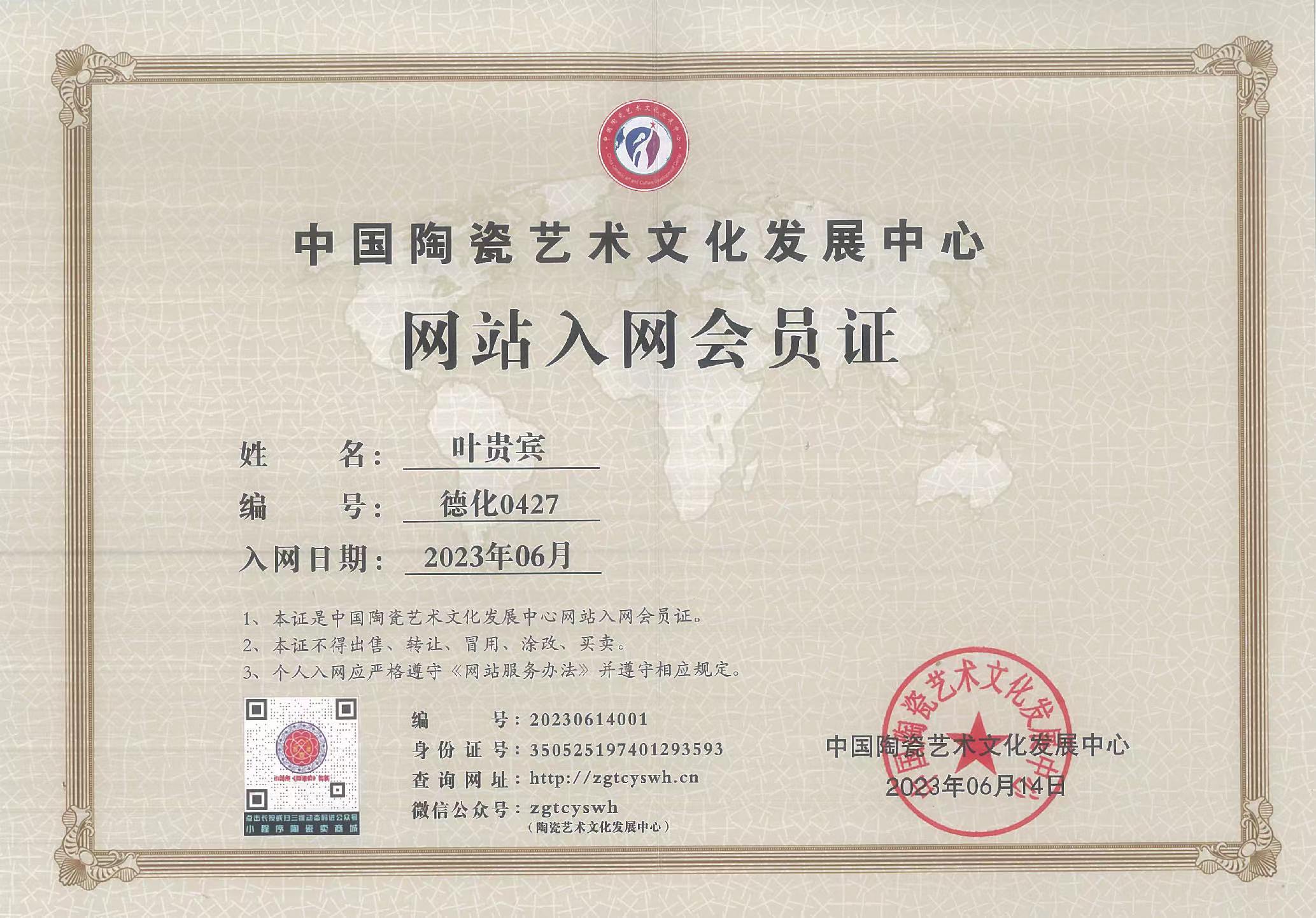 《唐威陶瓷》创始人·艺术总监。 叶贵宾从小深受千年瓷都德化陶瓷文化熏陶,耳濡