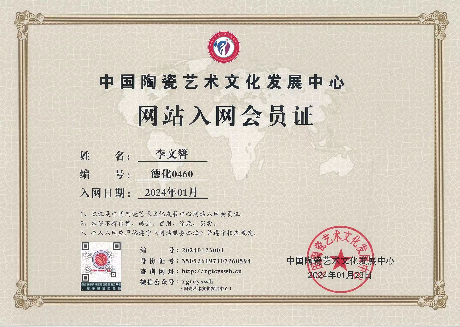 李文簪从小深受千年瓷都德化陶瓷文化熏陶,出生于一代“瓷圣”何朝宗故乡瓷都德化浔中镇后所,从小耳濡目染,对德化陶瓷产生浓厚兴趣,也喜欢上了陶瓷及其烧制技艺。从小跟随瓷都德化老艺人学艺,从艺30多年,熟练掌握泥料选配、器型设计、手拉坯、釉水配方、烧制技艺,专注茶品作品创作。经过多年创作,其创作出一系列茶器作品,作品器形丰富,款式新颖,深受广大客户及收藏爱好者喜爱,多件作品被评为金奖,2024年作品《龙跃凤鸣紫砂茶壶》荣获北京中国陶瓷艺术名家作品展金奖等。