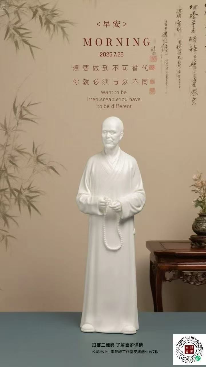 李锦峰:全国技术能手、国家一级高级技师、福建省陶瓷艺术大师、摸泥世家陶瓷艺术研究所艺术总监。李锦峰先生1999年毕业于厦门工艺美术学院,同年执教于泉州工艺美术学院。先后师从当代著名雕塑家王则坚与中国工艺美术大师卢思立。从事雕塑二十余载,一直致力于传统陶瓷雕塑的当代传承与艺术创新。多件陶瓷作品被国内外博物馆收藏。2018年央视《中华揭秘》之德化白瓷传奇人物专访。