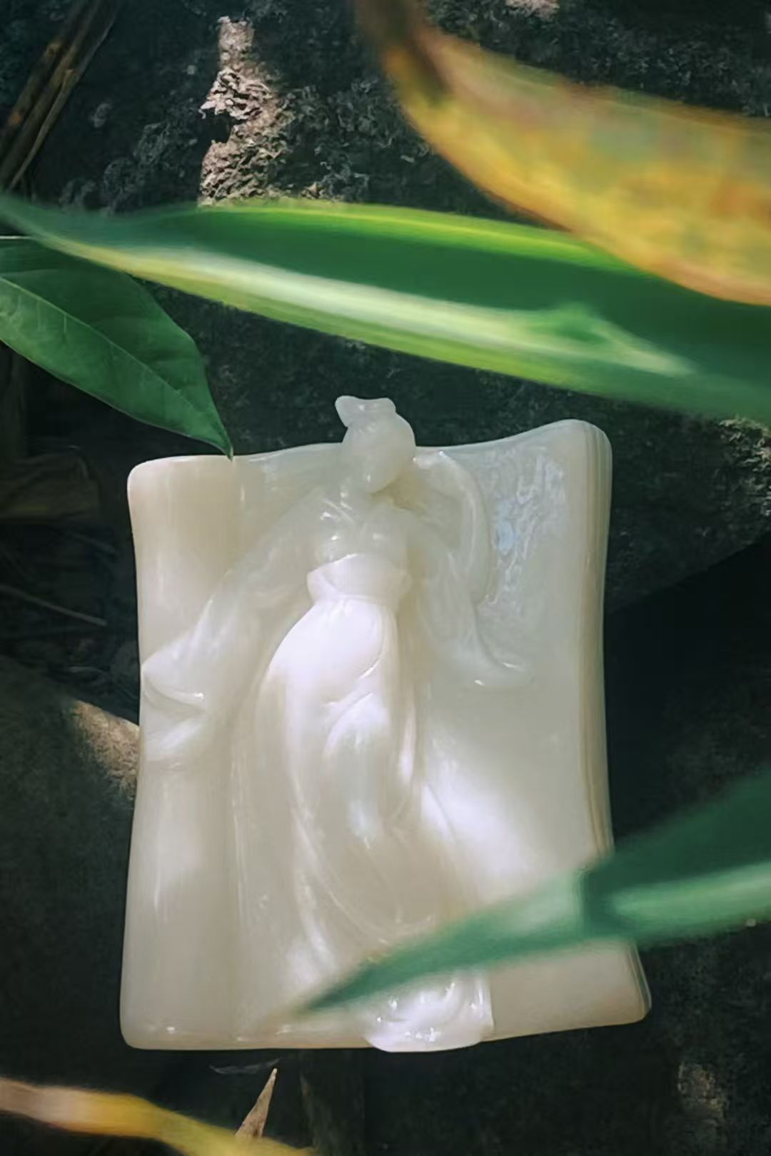 德化白瓷自古以堆雕,捏塑闻名,特别是人物塑造工艺更具有特色,独有的白瓷材料,温润细腻很适合表现仕女如脂如玉的美感。